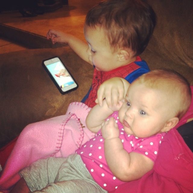 So.. Day 16: watching some Yo Gabba while loving his sister (he would get mad if I picked her up, and say "Hold her baby! Hold her baby!)